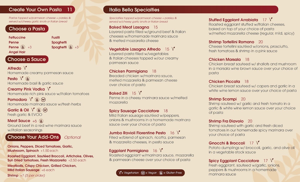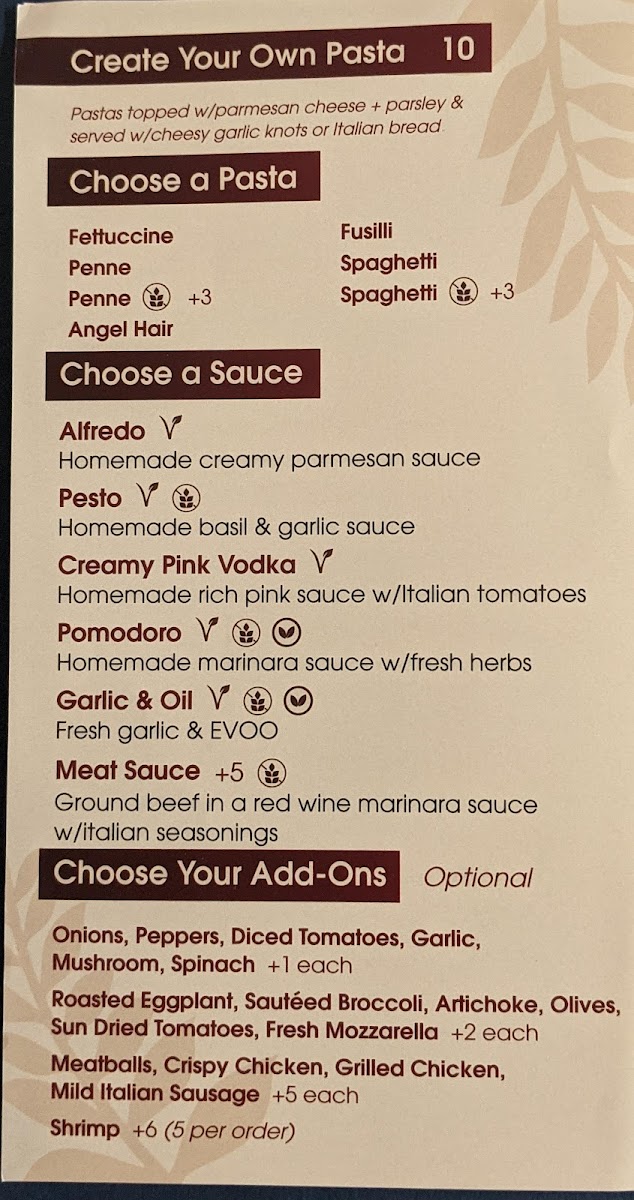 Choose Penne, Spaghetti, Fettuccine or Fusilli